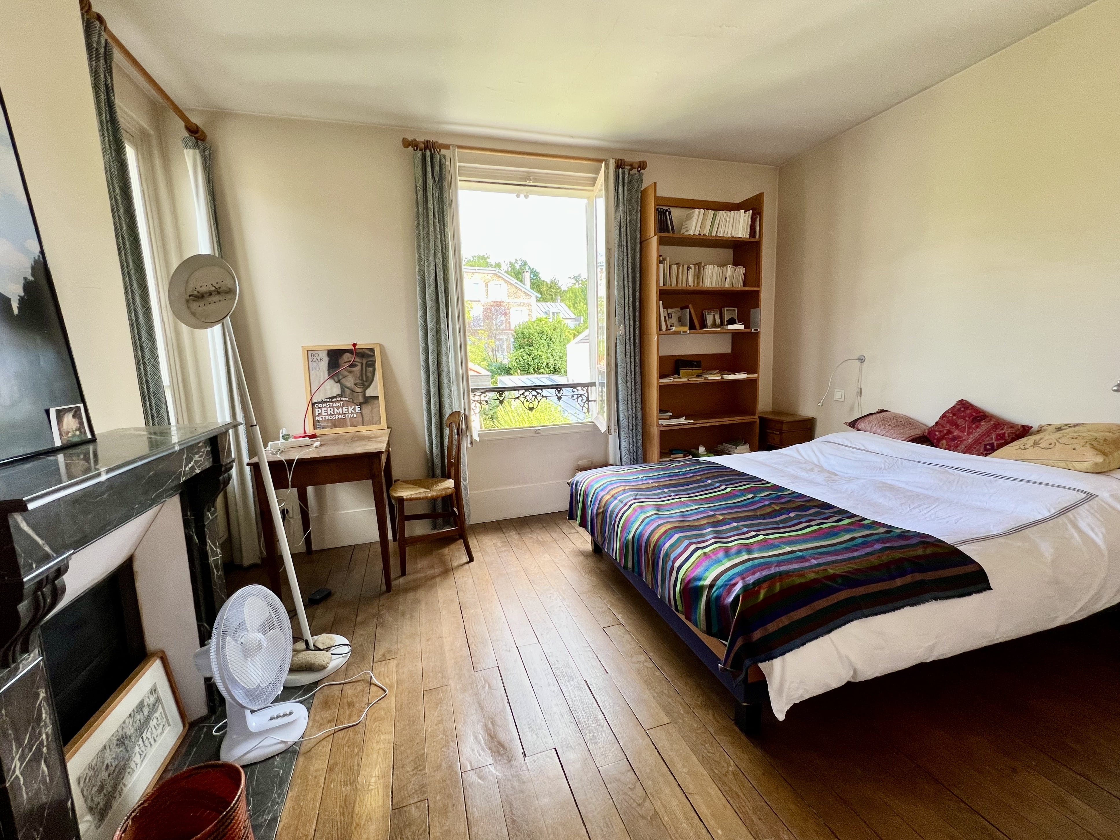 Au premier étage, deux chambres dont une grande suite parentale de 27 m2, une salle de bains et des toilettes séparés. Au second étage, une chambre de 27 m2 (anciennement 2 chambres), une autre chambre, une salle de bains, des toilettes séparés. Au 3ème niveau dans une tourelle d’époque, un dortoir de 16 m2 au sol avec une vue magnifique sur Sèvres.
